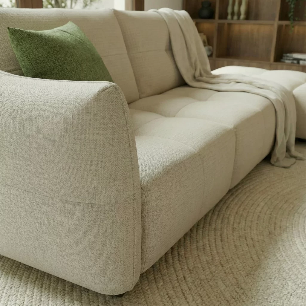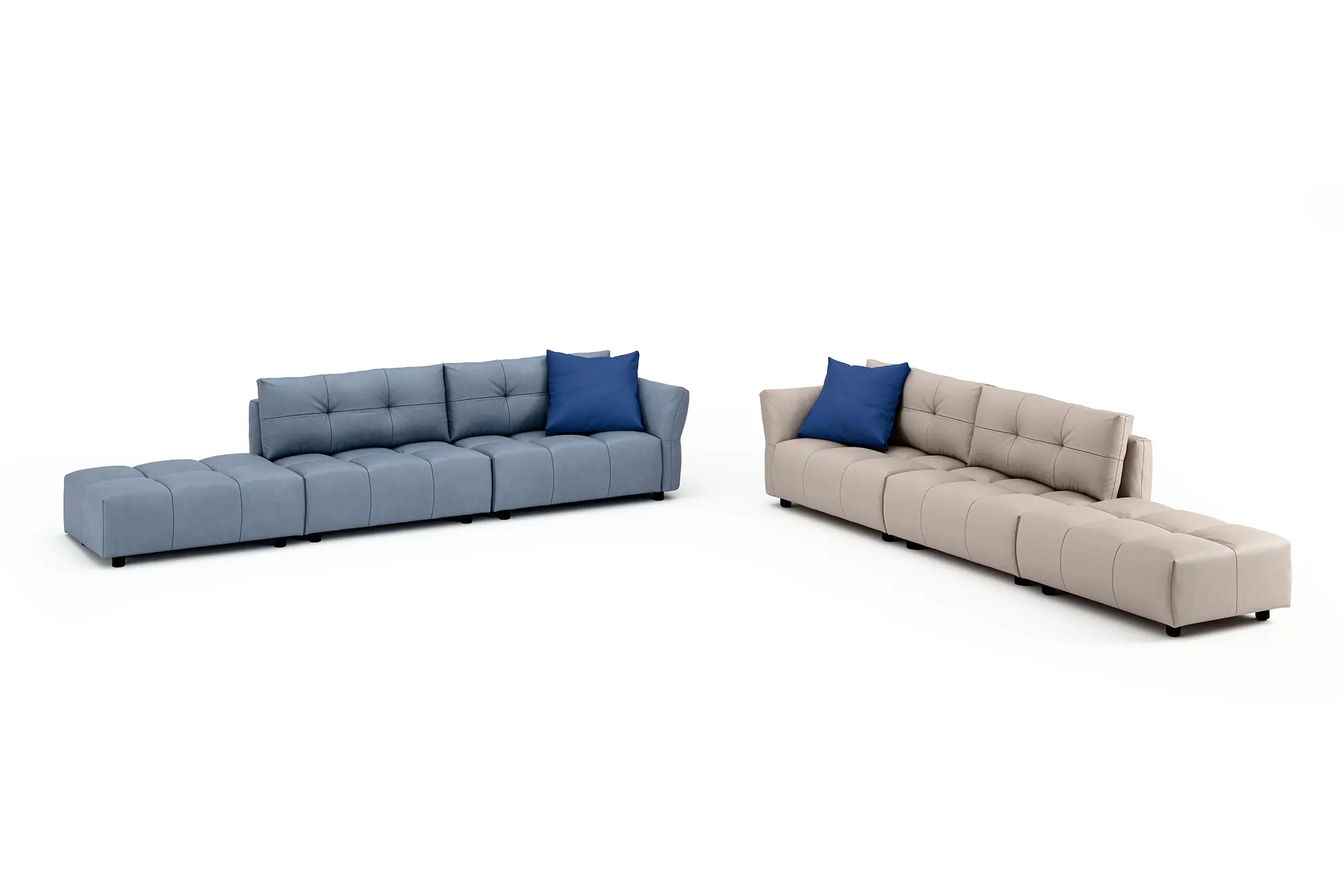 The Dune sofa is a perfect blend of elegance and comfort, inspired by the fluid shapes of nature. Its seat, enhanced by refined quilting and a wide, ergonomic armrest, offers enveloping comfort. The loose cushions allow for complete customization of space, while the high-quality padding ensures an unparalleled relaxation experience. Available in leather, fabric, or microfiber, Dune adapts stylishly to any environment.